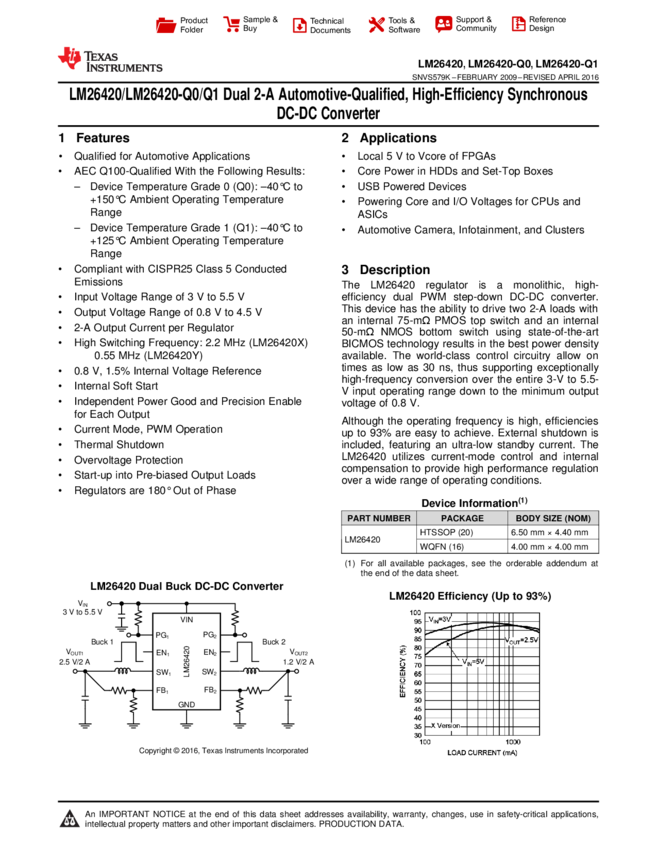 LM26420YSQX/NOPB, LM26420XMHX/NOPB
