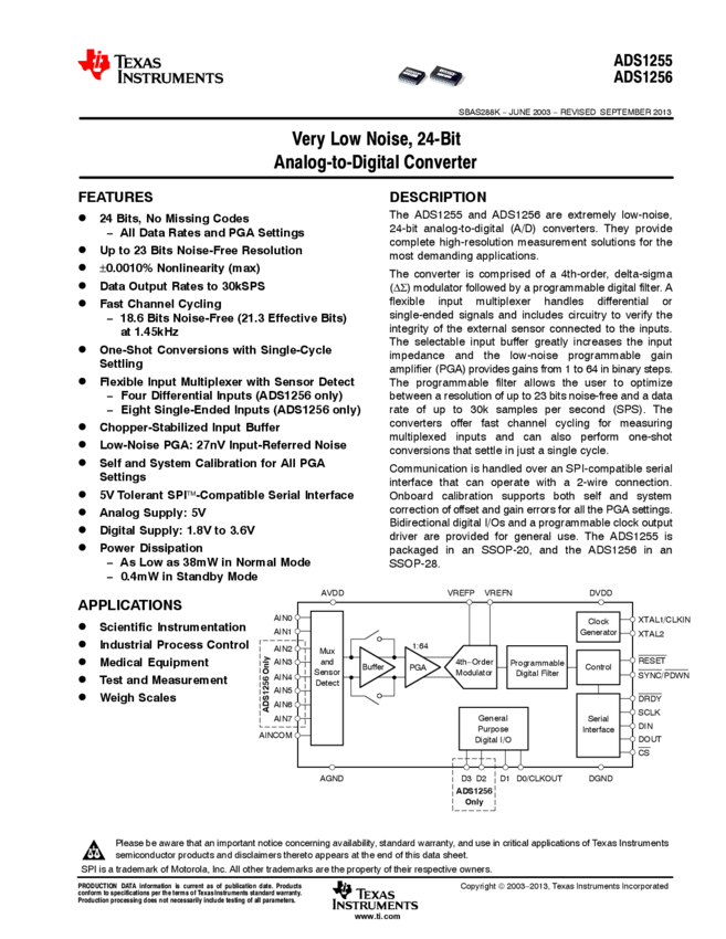 ADS1255IDBR ADC Single Delta-Sigma 30ksps 24-bit Serial 20-Pin SSOP T/R