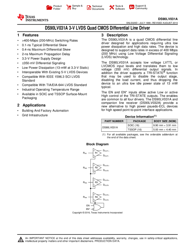 DS90LV031ATMX/NOPB, DS90LV031ATMTCX/NOPB