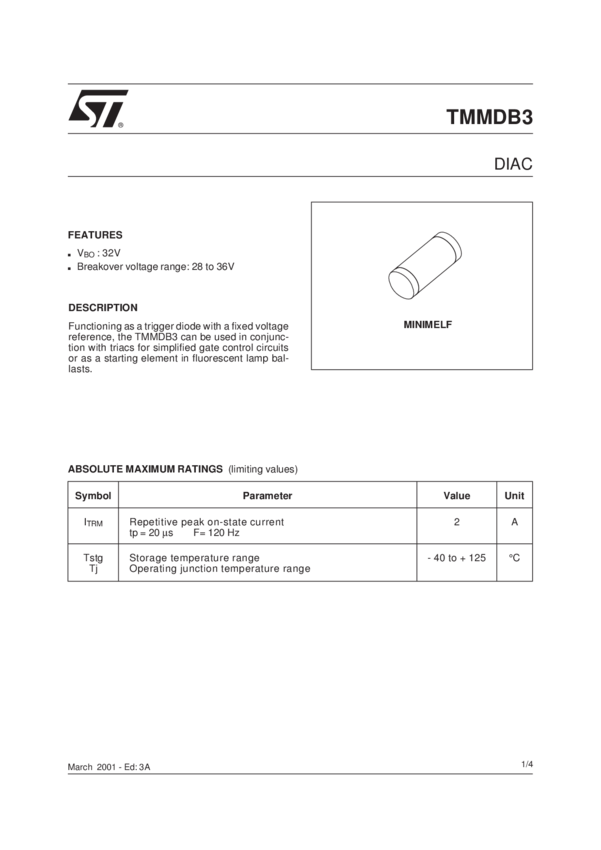 TMMDB3 Thyristor DIAC 2-Pin Mini-MELF T/R