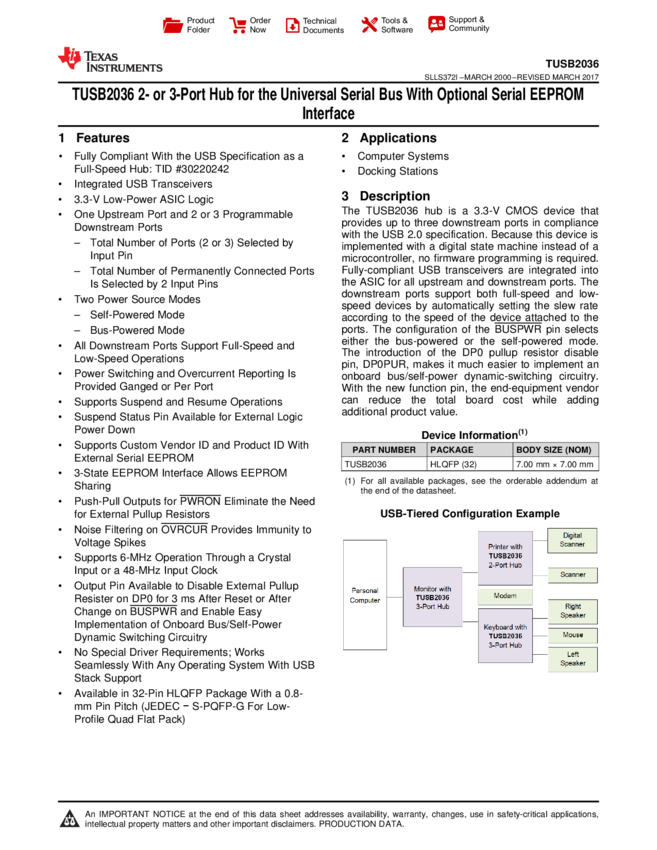 TUSB2036VFR Hub for The Universal Serial Bus 32-Pin LQFP T/R