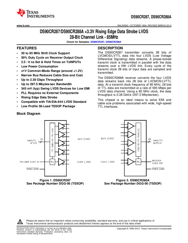DS90CR287MTDX/NOPB LVDS Serializer 0.45V 56-Pin TSSOP T/R