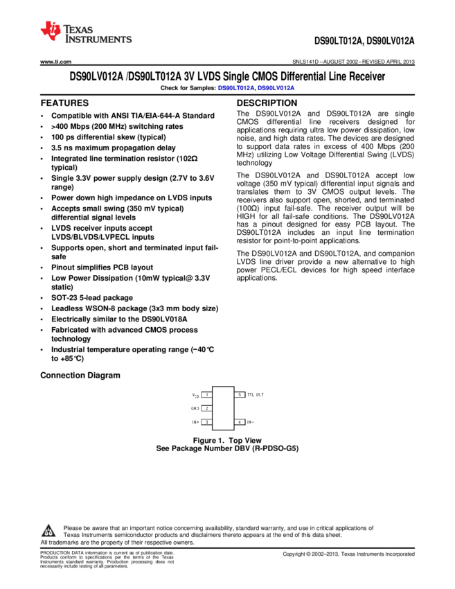 DS90LV012ATMF/NOPB, DS90LT012ATMF, DS90LV012ATMFX/NOPB