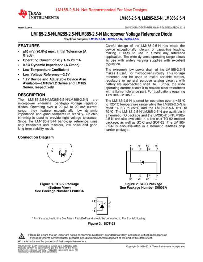 LM385BM-2.5/NOPB, LM385MX-2.5/NOPB, LM285BXMX-2.5/NOPB