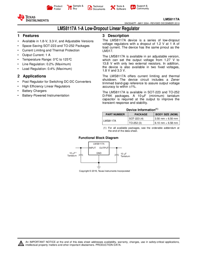 LMS8117AMP-1.8/NOPB, LMS8117AMP-3.3/NOPB, LMS8117AMP-ADJ/NOPB, LMS8117ADTX-ADJ/NOPB
