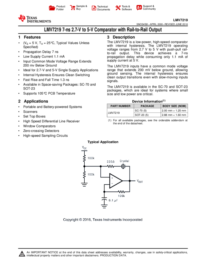 LMV7219M5X/NOPB Comparator Single R-R O/P 5V 5-Pin SOT-23 T/R