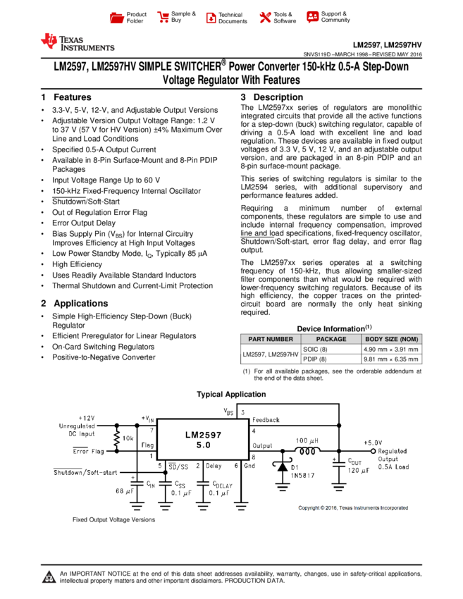 LM2597HVMX-ADJ/NOPB Conv DC-DC Single Inv/Step Down 4.5V to 60V 8-Pin SOIC N T/R