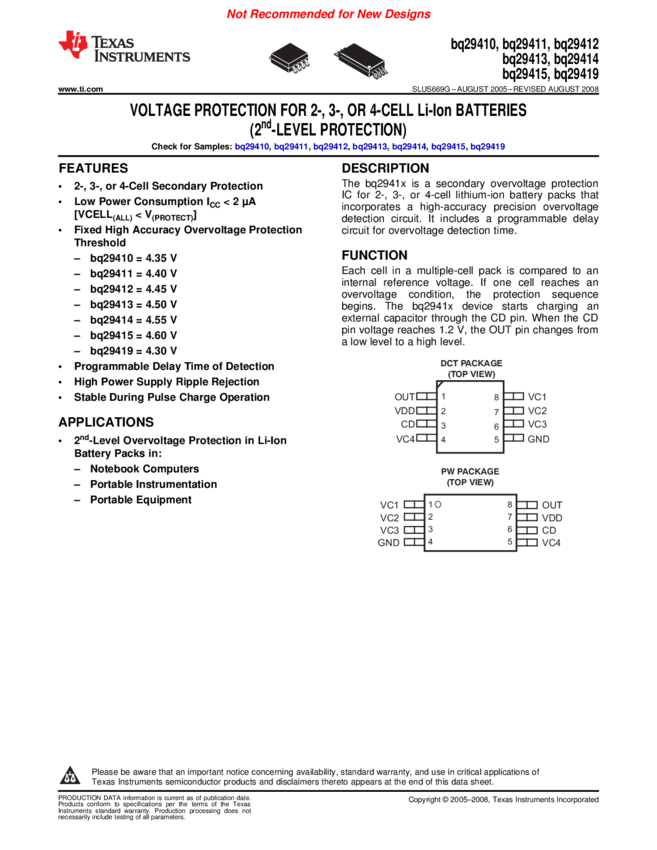 BQ29410DCT3R Battery Protection Li-Ion 2V 8-Pin SSOP T/R