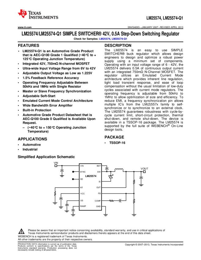 LM25574MTX/NOPB Conv DC-DC Single Inv/Step Down 6V to 42V 16-Pin TSSOP T/R