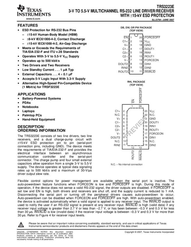 TRS3223EIPWR Dual Transmitter/Receiver RS-232 20-Pin TSSOP T/R