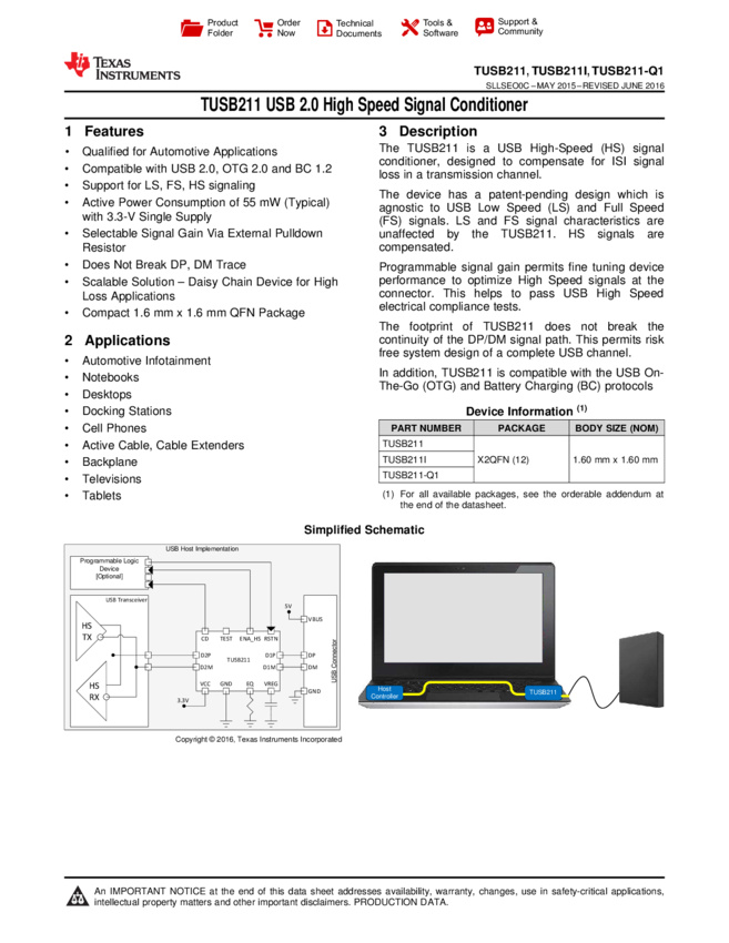 TUSB211IRWBR High Speed Signal Conditioner 12-Pin X2QFN T/R