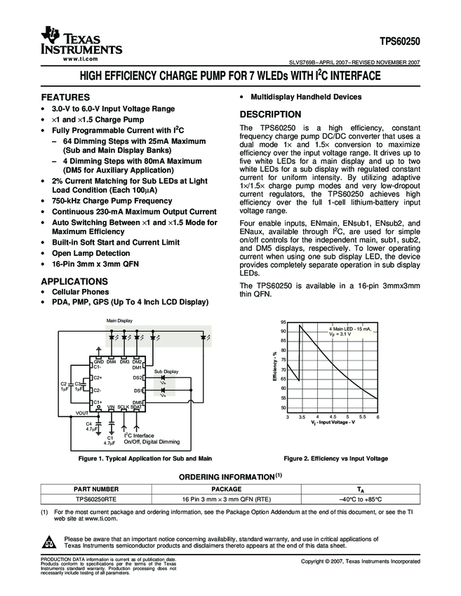 TPS60250RTET LED DRVR 6Segment 3.3V/5V 16-Pin WQFN EP T/R