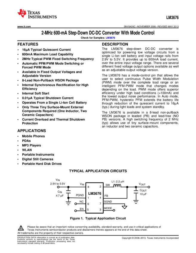 LM3676SD-1.8/NOPB Conv DC-DC Single Step Down 2.9V to 5.5V 8-Pin LLP EP T/R