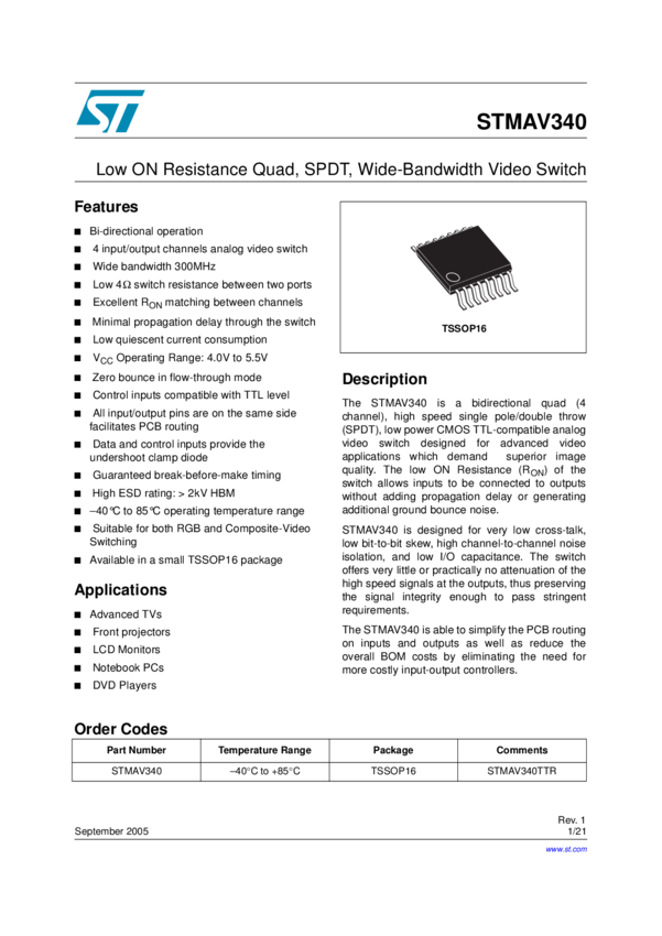 STMAV340TTR Analog Switch Quad SPDT 16-Pin TSSOP T/R