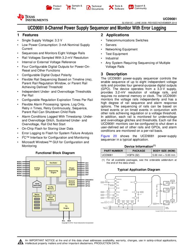 UCD9081RHBT Volt Supervisor Sequencer/Monitor 32-Pin VQFN EP T/R