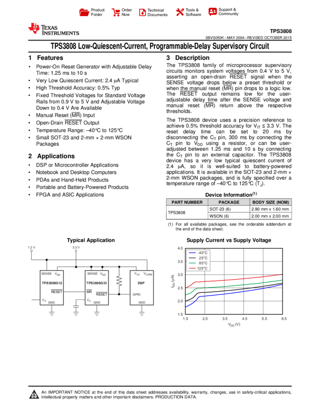 TPS3808G01DRVT, TPS3808G125DBVT, TPS3808G125DBVR