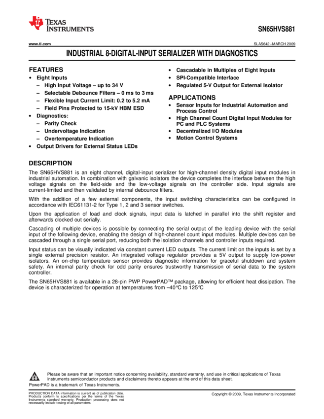 SN65HVS881PWPR Digital Input Serializer 28-Pin HTSSOP EP T/R