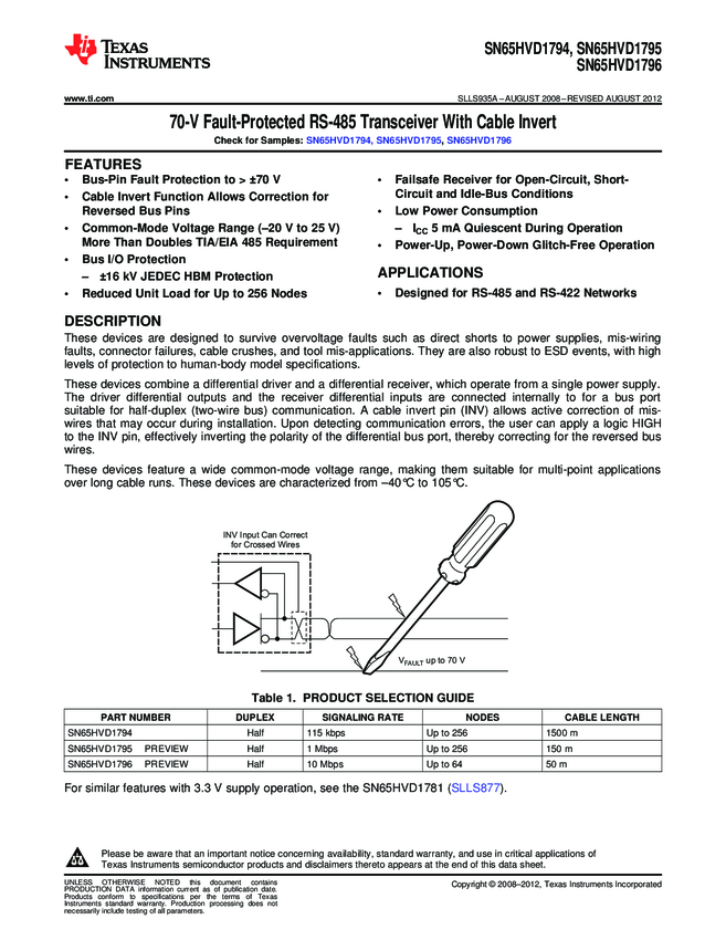 SN65HVD1794DR Transceiver 1TX 1RX 115Kbps 8-Pin SOIC T/R