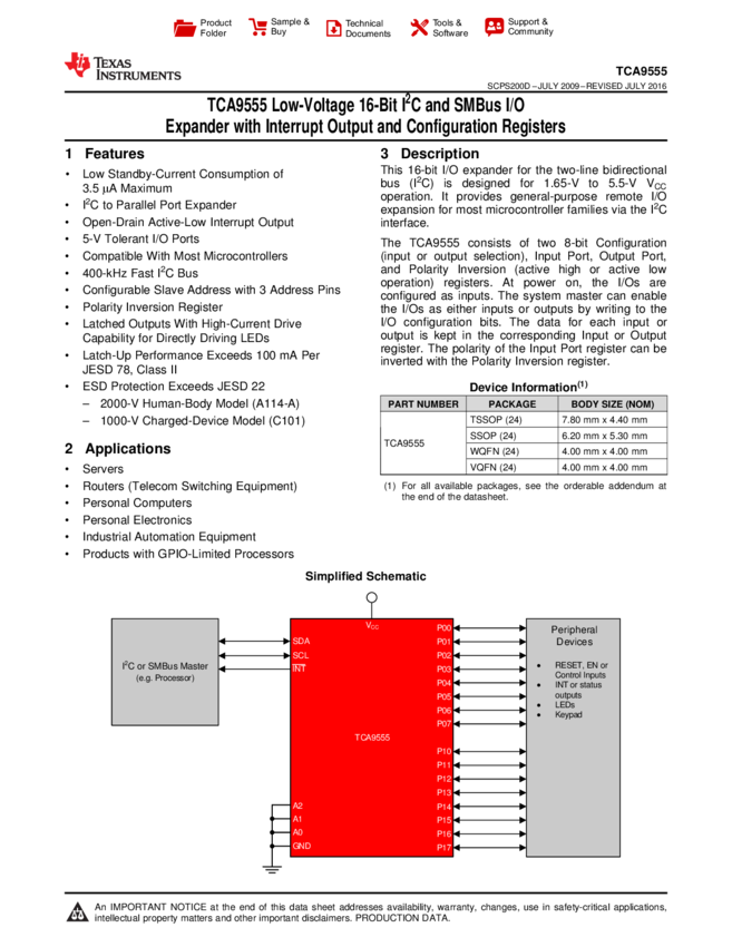 TCA9555PWR I2C and SMBus I/O Expander 24-Pin TSSOP T/R