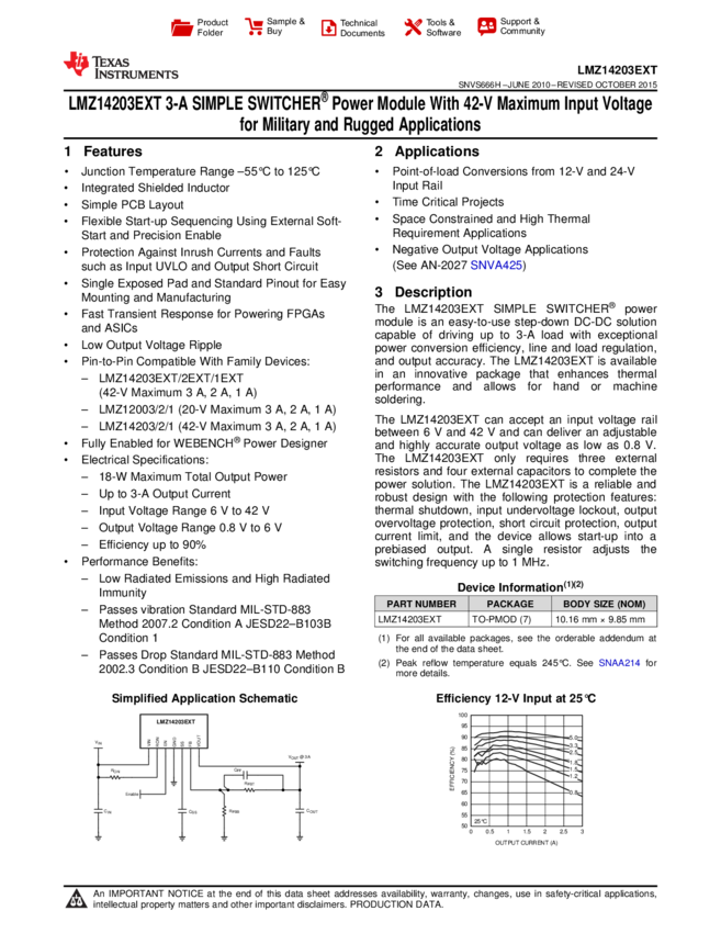 LMZ14203EXTTZ/NOPB Simple Switcher Power Module 7-Pin TO-PMOD T/R