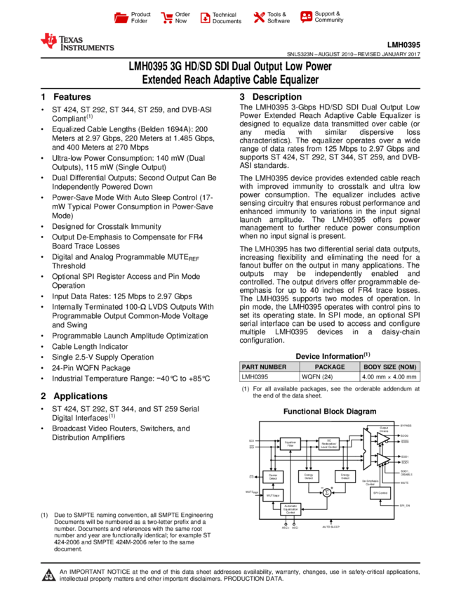 LMH0395SQE/NOPB Cable Equalizer 24-Pin LLP EP T/R