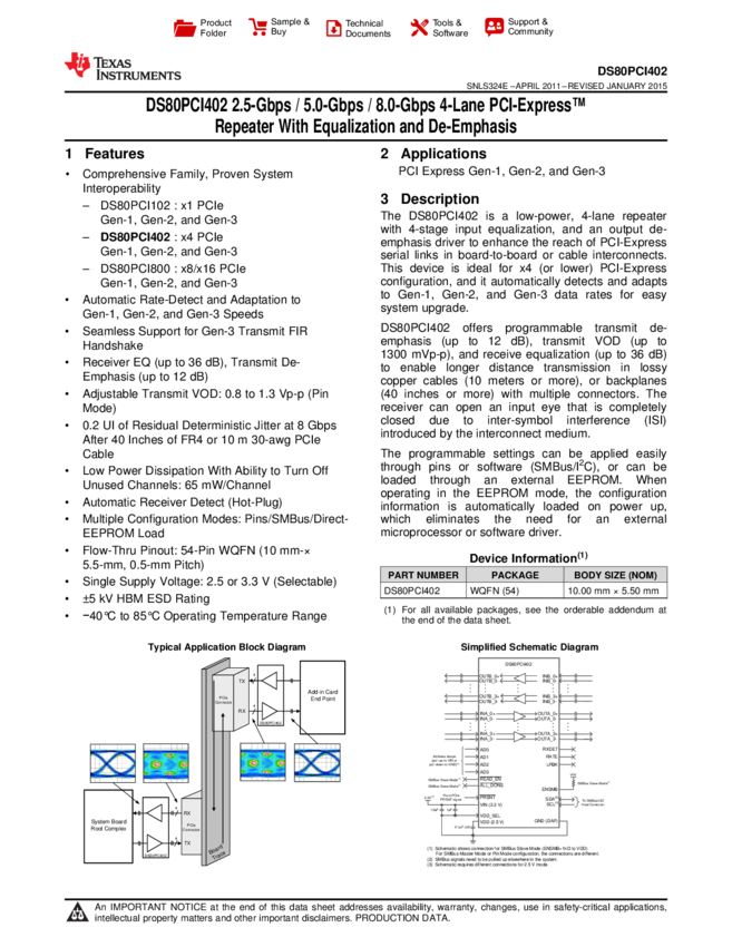 DS80PCI402SQE/NOPB Lane PCI Express Repeater 54-Pin LLP EP T/R