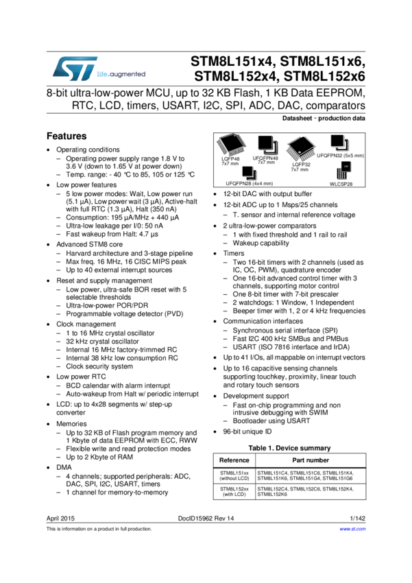 STM8L151G4U6TR, STM8L151G4Y6TR