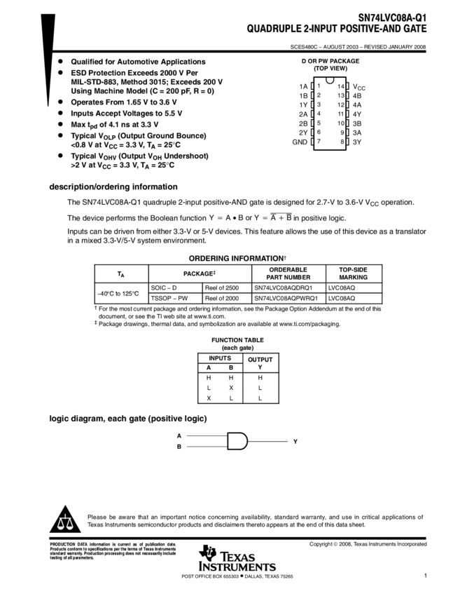 SN74LVC08AQPWRQ1 AND Gate 4-Element 2-IN CMOS 14-Pin TSSOP T/R