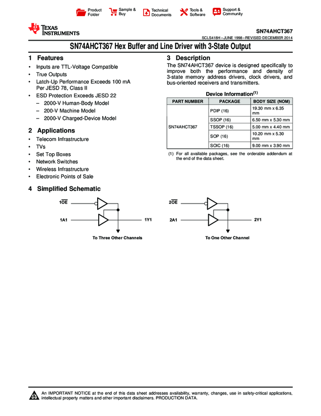 SN74AHCT367D Buffer/Line Driver 6-CH Non-Inverting 3-ST CMOS 16-Pin SOIC Tube