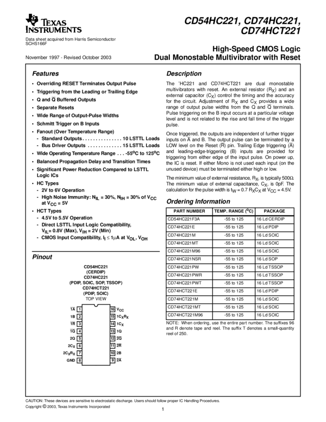 CD74HC221M, CD54HC221F3A