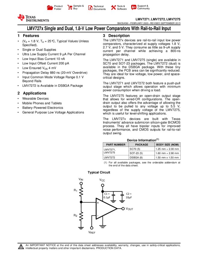 LMV7271MG/NOPB, LMV7271MGX/NOPB, LMV7272TL/NOPB, LMV7275MFX/NOPB, LMV7275MG/NOPB
