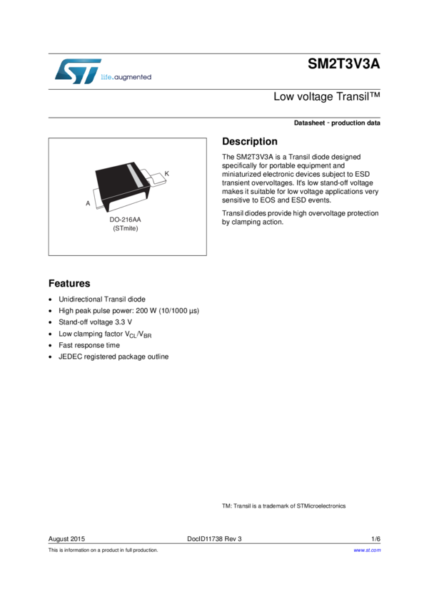 SM2T3V3A Diode TVS Single Uni-Dir 3.3V 200W 2-Pin ST Mite T/R