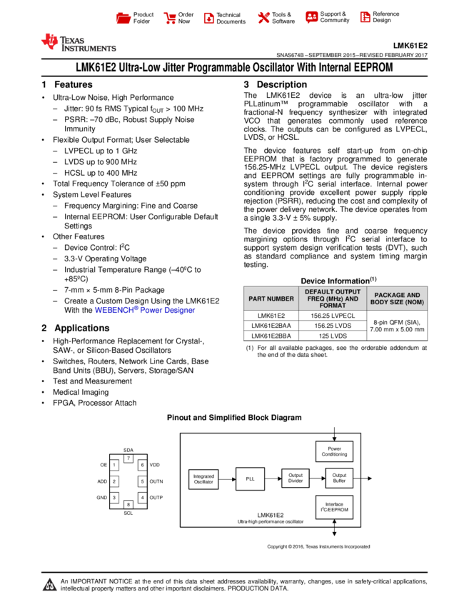 LMK61E2-SIAT Programmable Oscillator Single 10MHz to 1000MHz 8-Pin QFM T/R