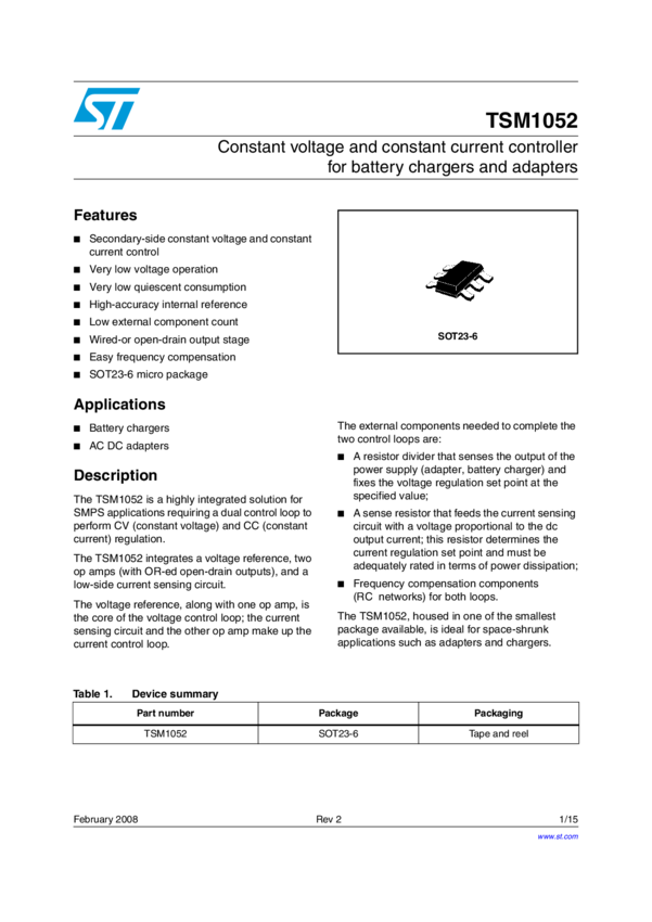 TSM1052 Voltage Mode PWM Controller -0.3V to 18V 100mA 6-Pin SOT-23 T/R
