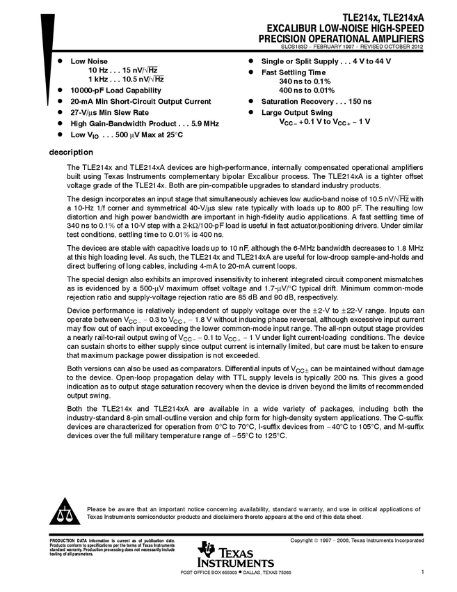 TLE2141MDREP OP Amp Single GP R-R O/P ±22V/44V 8-Pin SOIC T/R
