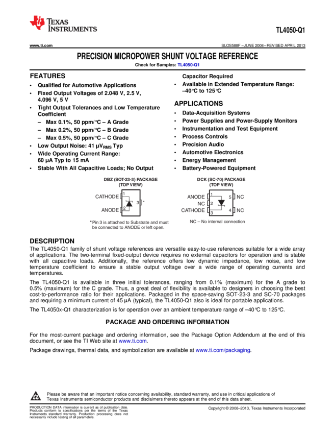 TL4050A50QDBZRQ1, TL4050B25QDBZRQ1, TL4050B25QDCKRQ1
