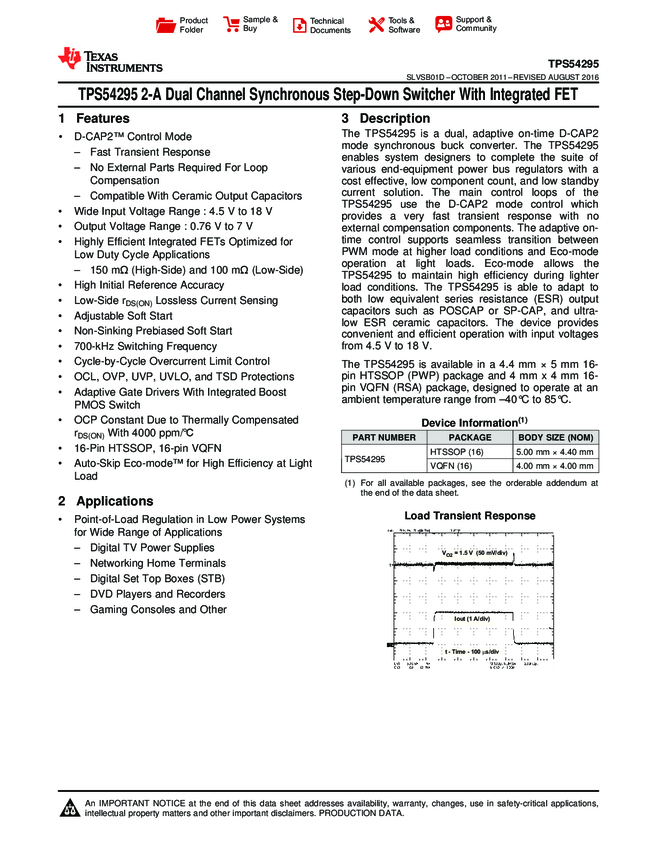 TPS54295RSAT Conv DC-DC Dual Step Down 4.5V to 18V 16-Pin VQFN T/R