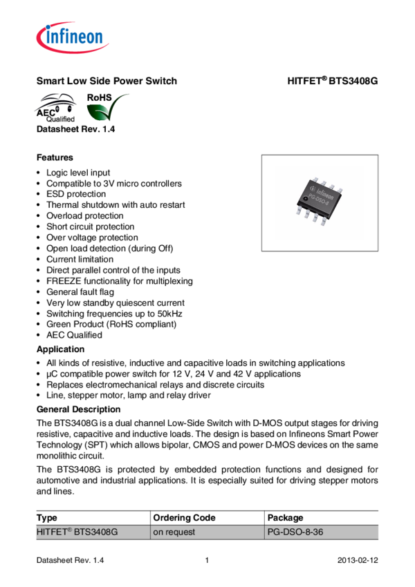 BTS3408GXUMA2/SN Power Switch Lo Side 0.55A 8-Pin DSO