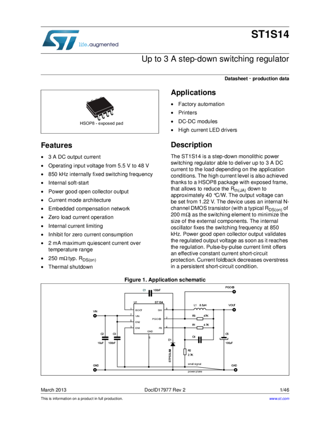 ST1S14PHR Conv DC-DC Single Step Down 5.5V to 48V 8-Pin HSOP EP T/R