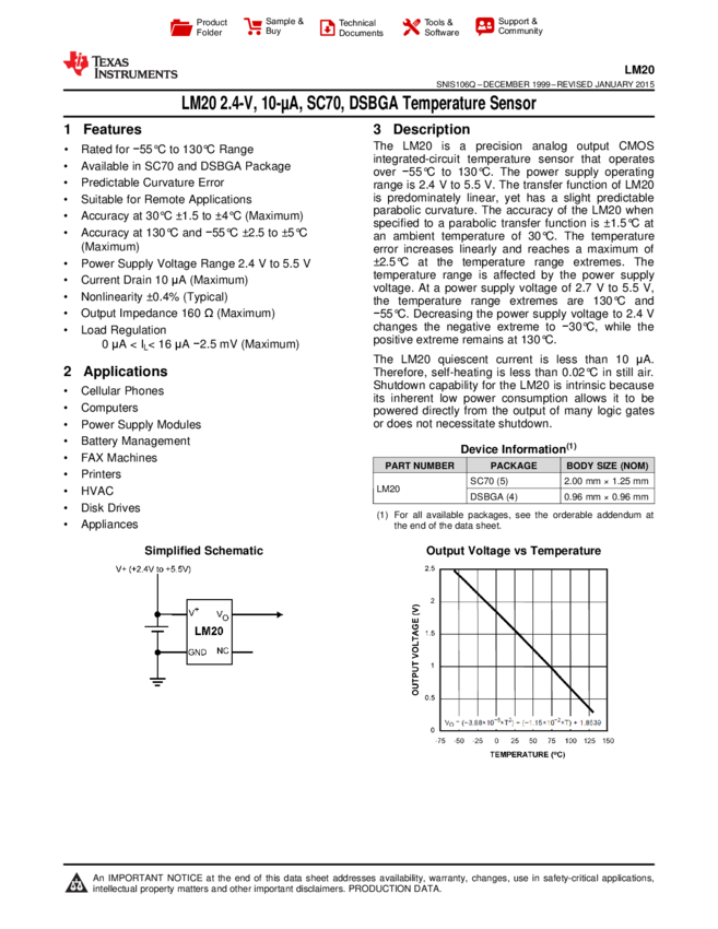 LM20BIM7 Temp Sensor Analog 5-Pin SC-70 T/R