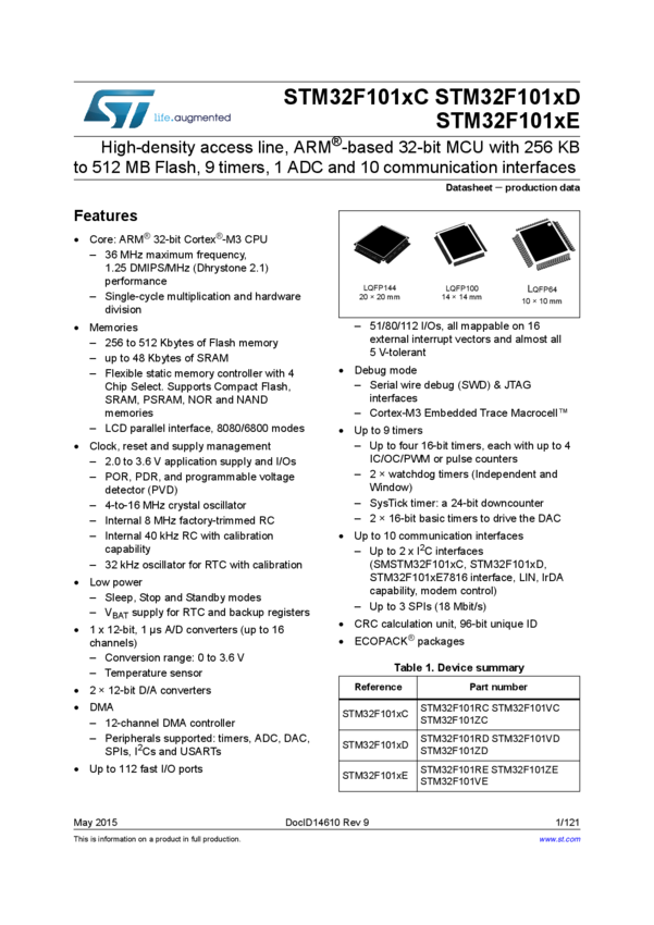 STM32F101VCT6TR MCU 32-bit STM32F ARM Cortex M3 RISC 256KB Flash 2.5V/3.3V 100-Pin LQFP T/R