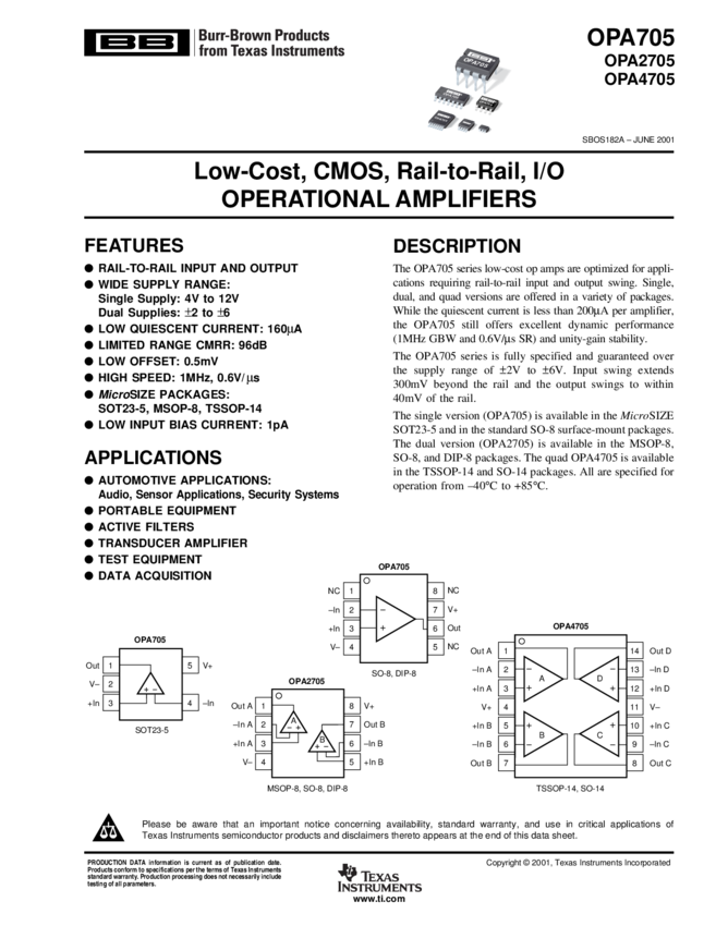 OPA4705EA/2K5 OP Amp Quad GP R-R I/O ±6V/12V 14-Pin TSSOP T/R