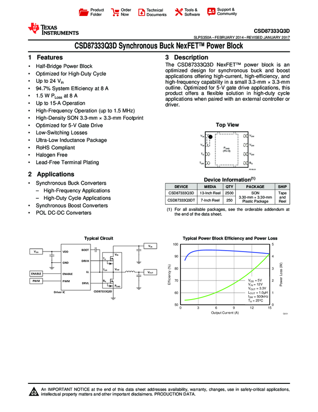 CSD87333Q3DT Synchronous Buck NexFET Power Block 8-Pin VSON-FET T/R