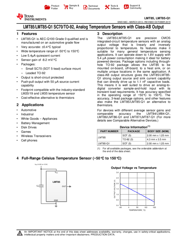 LMT85LP Temp Sensor Analog 3-Pin TO-92 T/R