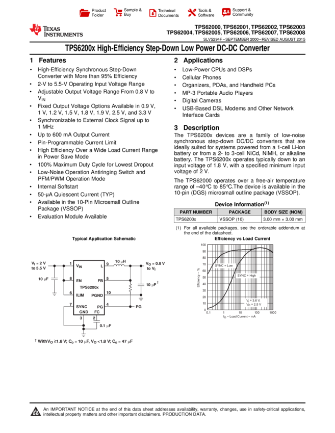 TPS62000DGSR, TPS62005DGSR, TPS62008DGSR, TPS62007DGSR