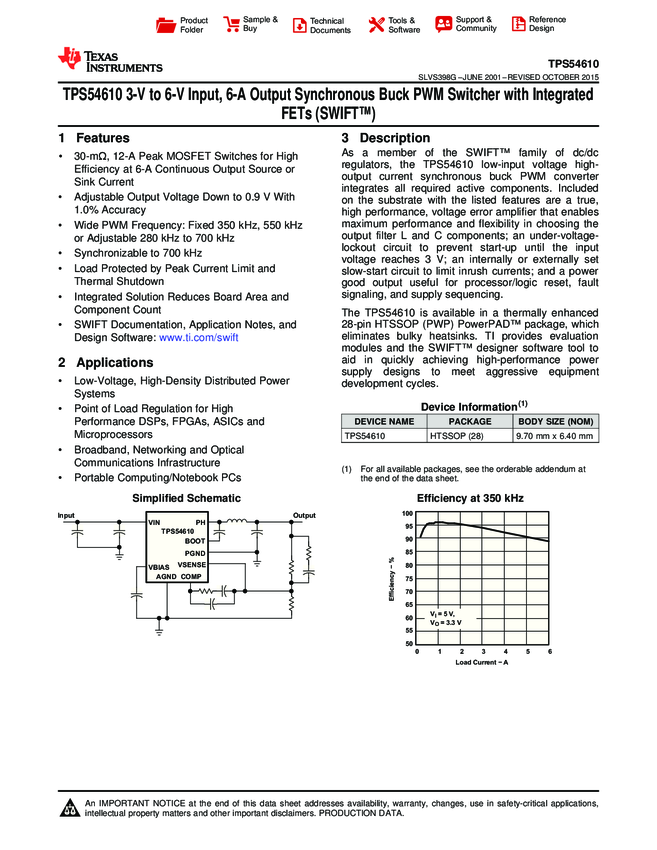 TPS54610PWPR Conv DC-DC Single Step Down 3V to 6V 28-Pin HTSSOP EP T/R