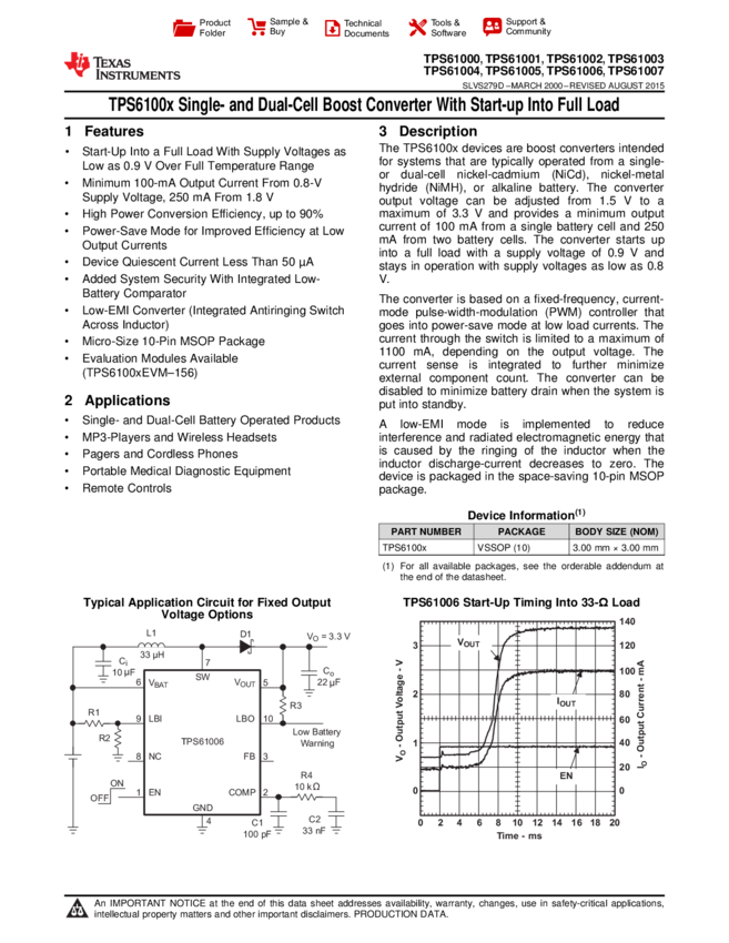 TPS61006DGSR Conv DC-DC Single Step Up 0.8V to 3.3V 10-Pin VSSOP T/R