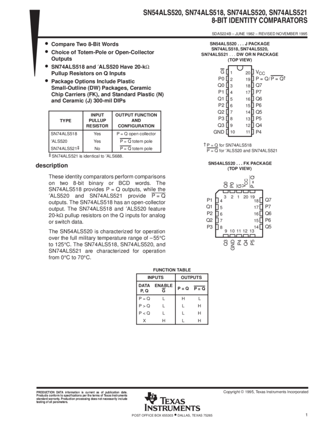 SN74ALS521DW, SN74ALS521N