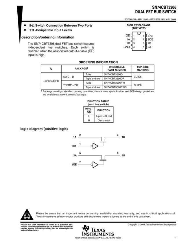 SN74CBT3306DR, SN74CBT3306PWRG4