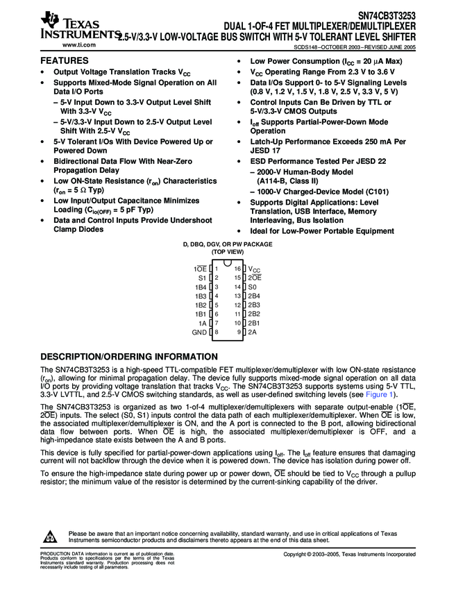 SN74CB3T3253PWR Multiplexer/Demultiplexer Bus Switch 1-Element CMOS 8-IN 16-Pin TSSOP T/R